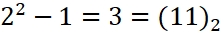 The sequence of Mersenne primes in the binary number system.