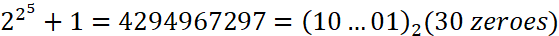The sequence of Fermat primes in the binary number system.